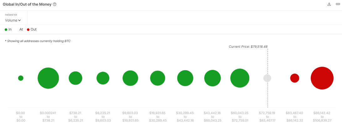 Intorno a questo livello, 6,76 milioni di indirizzi detengono circa 2,64 milioni di token BTC acquisiti a un prezzo medio di $65.296. Pertanto, questa zona potrebbe offrire un supporto significativo per il prezzo di Bitcoin, poiché i detentori prevengono ulteriori perdite.
