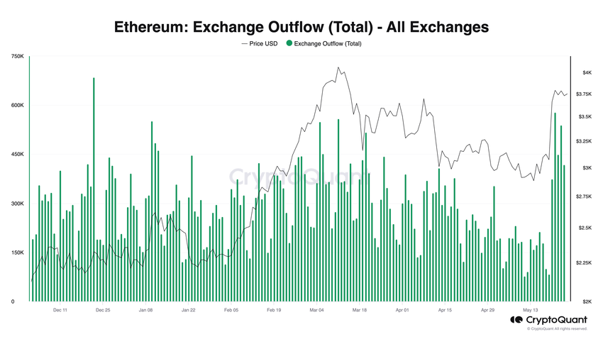 Ethereum: deflusso di scambio. Fonte: CryptoQuant