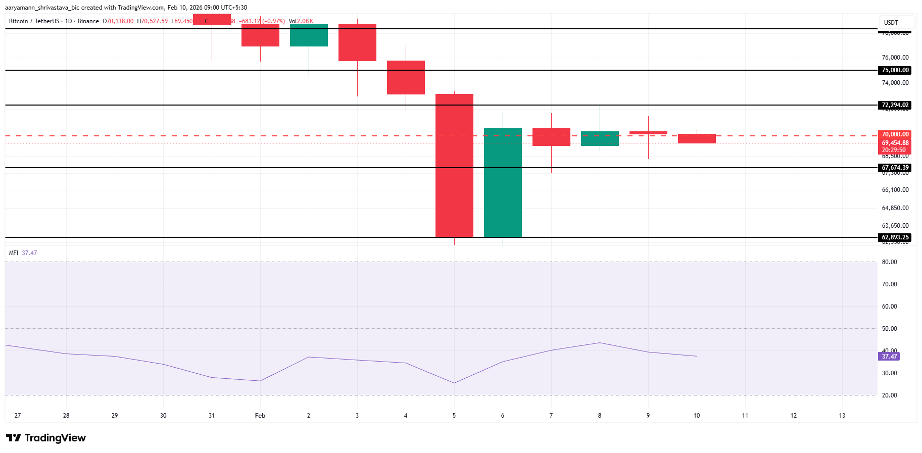 Uno scenario di recupero dipende dal miglioramento delle condizioni di mercato e da nuovi afflussi. Se la domanda dovesse rafforzarsi, Bitcoin potrebbe mettere alla prova la resistenza dei $72.294. Una rottura decisa sopra questo livello cambierebbe il momentum nel breve periodo, aprendo la strada verso i $75.000 e restituendo fiducia dopo il recente consolidamento.