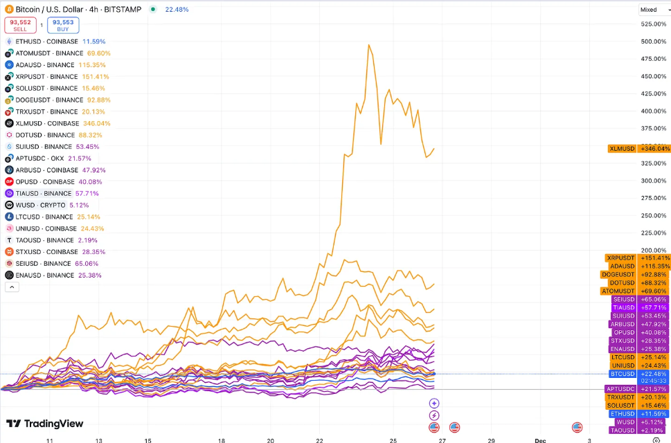 Questo sentimento si riflette nella natura ampia del pump nelle monete più vecchie. A differenza delle passate corse rialziste, dove dominavano asset speculativi come i memecoin, questo ciclo vede un comportamento più avverso al rischio. Gli investitori di ritorno sembrano dare priorità all’affidabilità e alla reputazione rispetto a guadagni ad alto rischio e a breve termine.