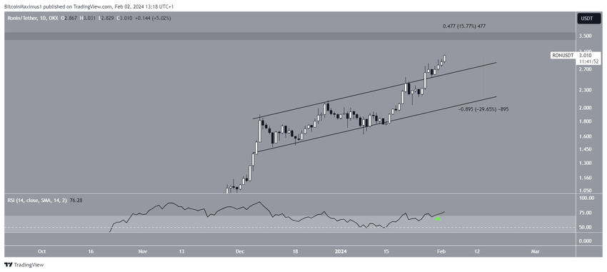 L’analisi tecnica del grafico a 3 giorni mostra che RON è aumentato rapidamente da quando è uscito da una linea di tendenza discendente di resistenza in ottobre.