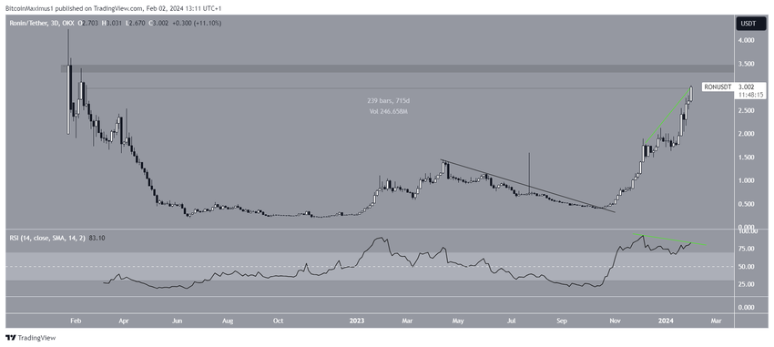 Il prezzo di Ronin (RON) è aumentato sensibilmente negli ultimi tre mesi e oggi ha superato i 3 dollari per la prima volta in due anni.