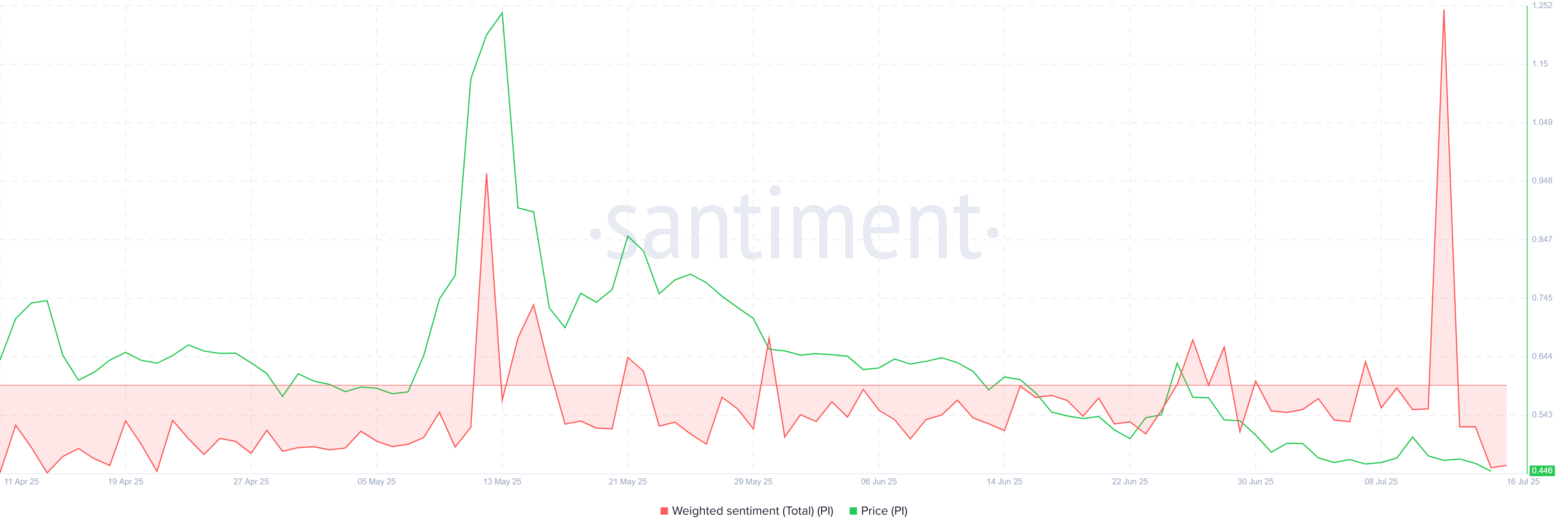 Il sentimento di mercato attorno a Pi Coin si è indebolito considerevolmente nelle ultime settimane. Il sentimento ponderato, che misura l’ottimismo degli investitori, ha visto un forte calo, scendendo al minimo di 3 mesi. Questo indica che gli investitori di Pi Coin sono sempre più scettici riguardo alle prestazioni future della moneta.