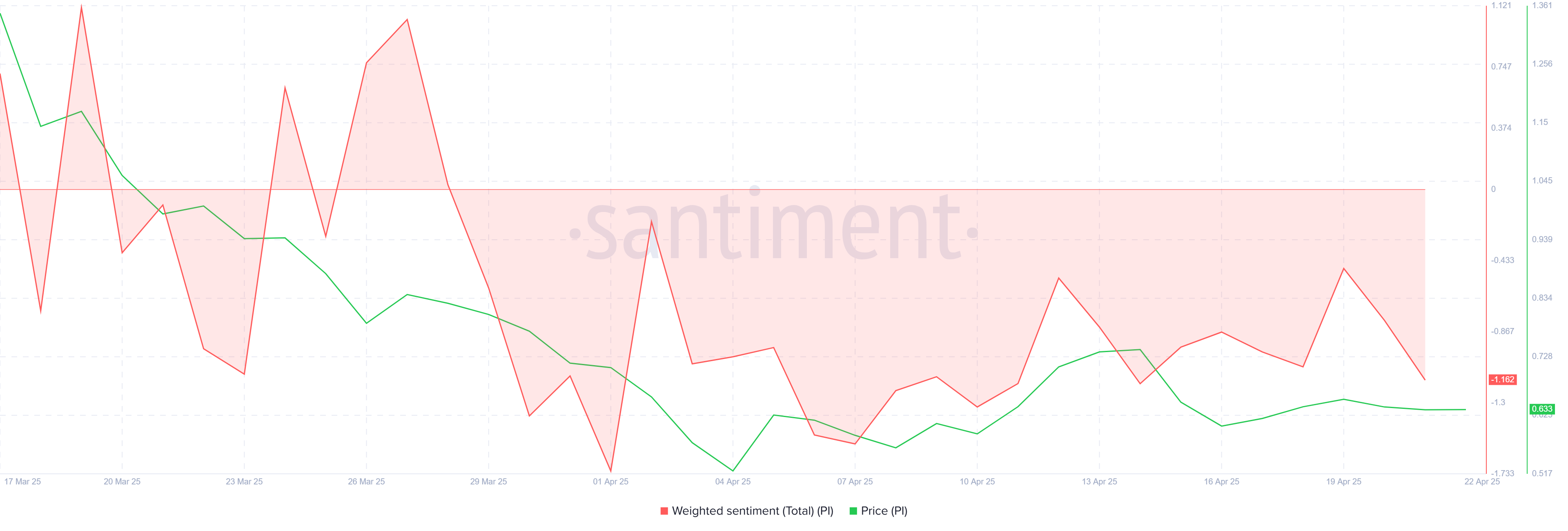 Il sentimento degli investitori di Pi Network è stato particolarmente negativo nell’ultimo mese. Molti stanno mettendo in discussione la proposta di valore del token, in particolare data la sua rapida perdita di hype iniziale. Questo, combinato con la volatilità in corso e la mancanza di una chiara utilità, ha portato a una esitazione nel mercato.