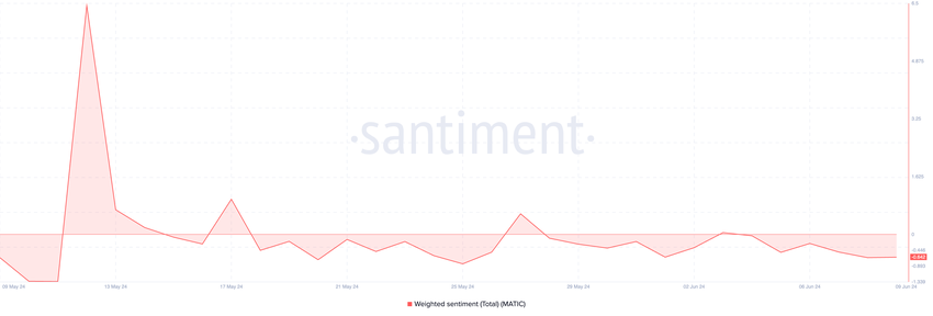 La tendenza del prezzo di MATIC verso la linea inferiore di questo canale nell’ultima settimana suggerisce un’impennata della tendenza ribassista verso l’altcoin. Ciò è stato confermato dal sentimento negativo ponderato osservato sul blockchain.