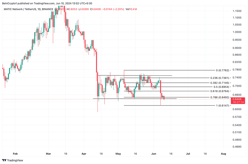 Al momento della stampa, MATIC era in piattaforma di scambio a 0,63 dollari, il prezzo più basso dall’ottobre 2023. Dal 13 aprile, il prezzo ha oscillato all’interno di un canale orizzontale, rimbalzando tra la resistenza a 0,75 dollari e il supporto a 0,64 dollari.