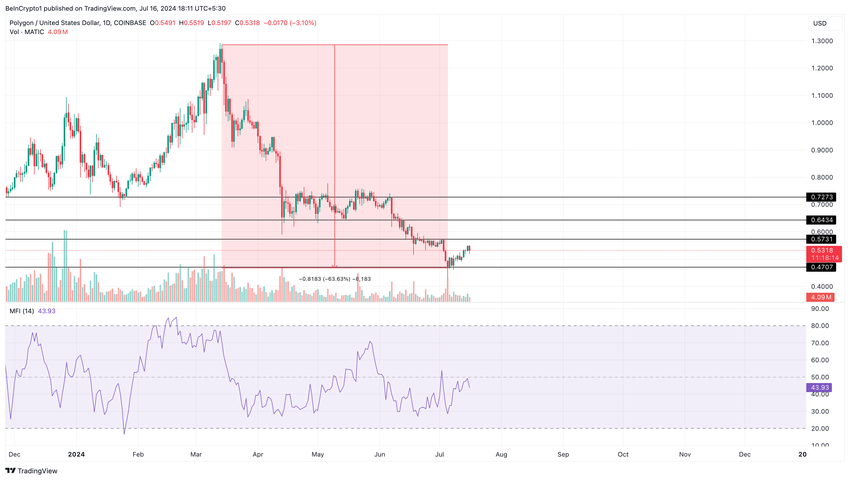 Se la liquidità del token dovesse aumentare, MATIC potrebbe rimbalzare, portando eventualmente a un breakout verso 0,64 dollari.