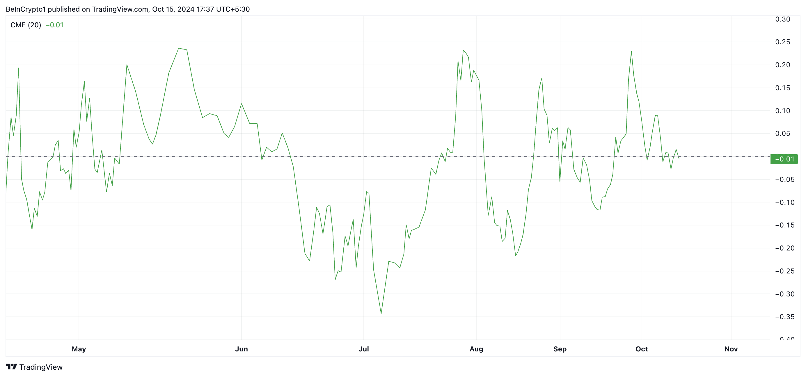 SponsoredQuando sia il prezzo che il CMF sono in calo, il sentimento ribassista si rafforza. Il prezzo in calo mostra debolezza e il CMF negativo conferma che i trader non stanno accumulando l’asset, rafforzando ulteriormente il momento al ribasso.