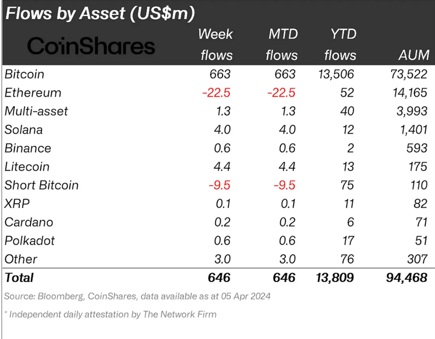 Flussi istituzionali di Polkadot. Fonte: CoinShares