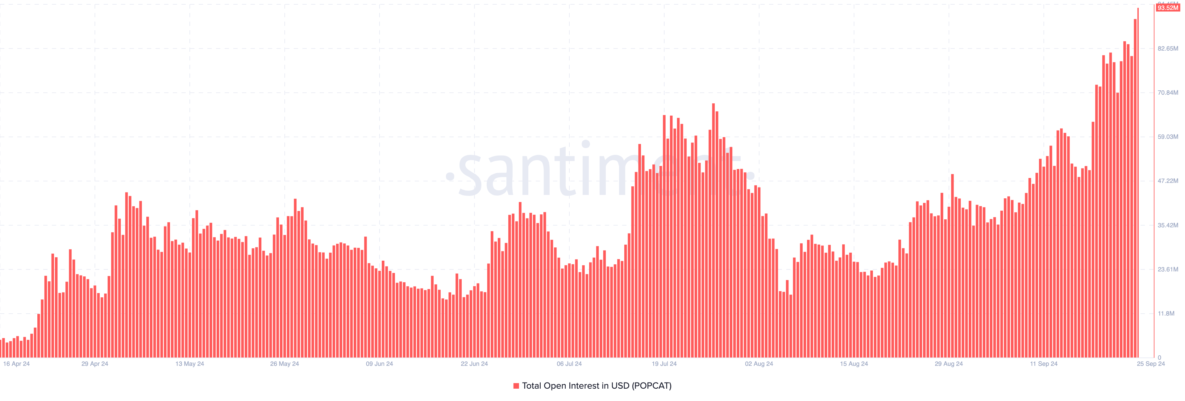L’Indice di Forza Relativa (RSI) conferma anche lo stato sovracomprato, poiché attualmente è sopra 70. Questo rafforza ulteriormente la probabilità di un ritracciamento nel prezzo di POPCAT.