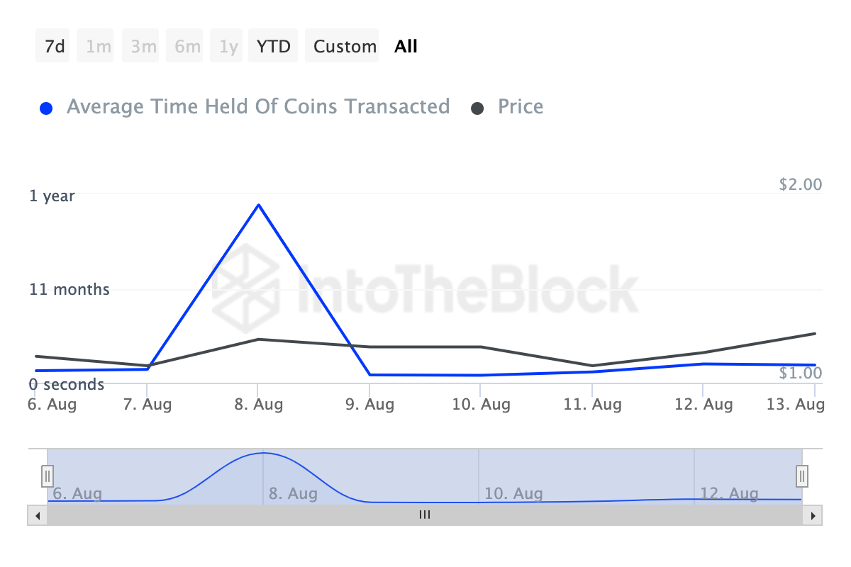 In parole povere, una diminuzione dell’Holding Time suggerisce che i possessori stanno effettuando transazioni o eventualmente vendendo la criptovaluta. Per IMX, il recente aumento del tempo di detenzione indica una crescente fiducia da parte dei detentori, e non si è limitato solo alla scorsa settimana.