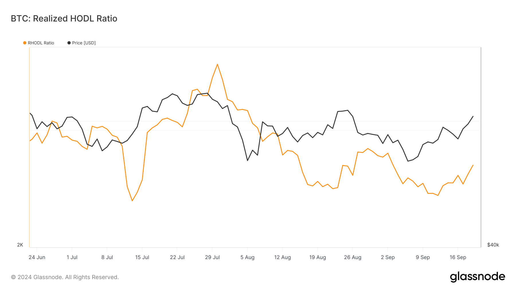 Inoltre, il rapporto Realized HODL (RHODL) è recentemente aumentato. Il rapporto RHODL mostra se il prezzo di Bitcoin ha raggiunto il picco o è in fondo. Un rapporto estremamente alto indica che la criptovaluta ha raggiunto il picco e potrebbe seguire una correzione.