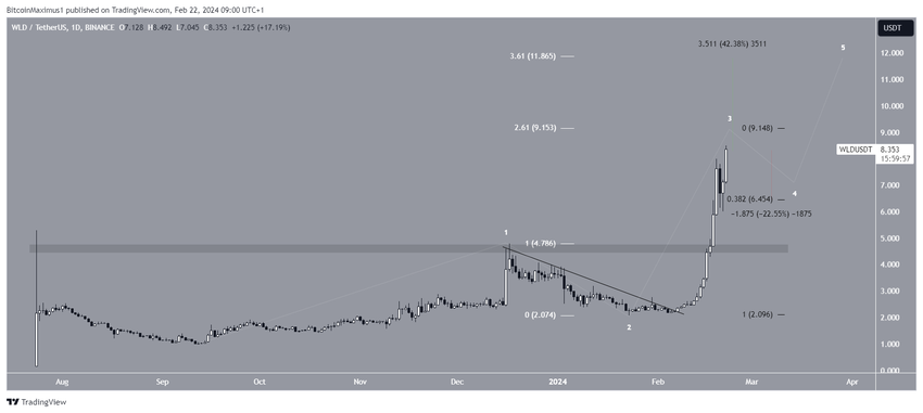 Il prezzo di Worldcoin (WLD) è aumentato rapidamente dall’inizio di febbraio e oggi ha raggiunto un nuovo massimo storico di 8,48 dollari.