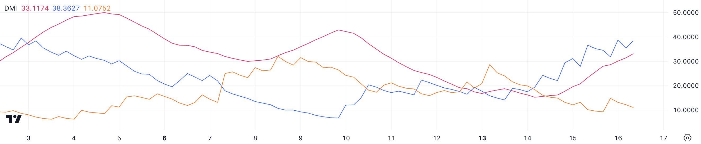 Algorand il grafico DMI mostra il suo ADX a 33.1, in forte aumento rispetto a 15.2 di due giorni fa. Questo indica un trend rialzista forte e in rapido rafforzamento.