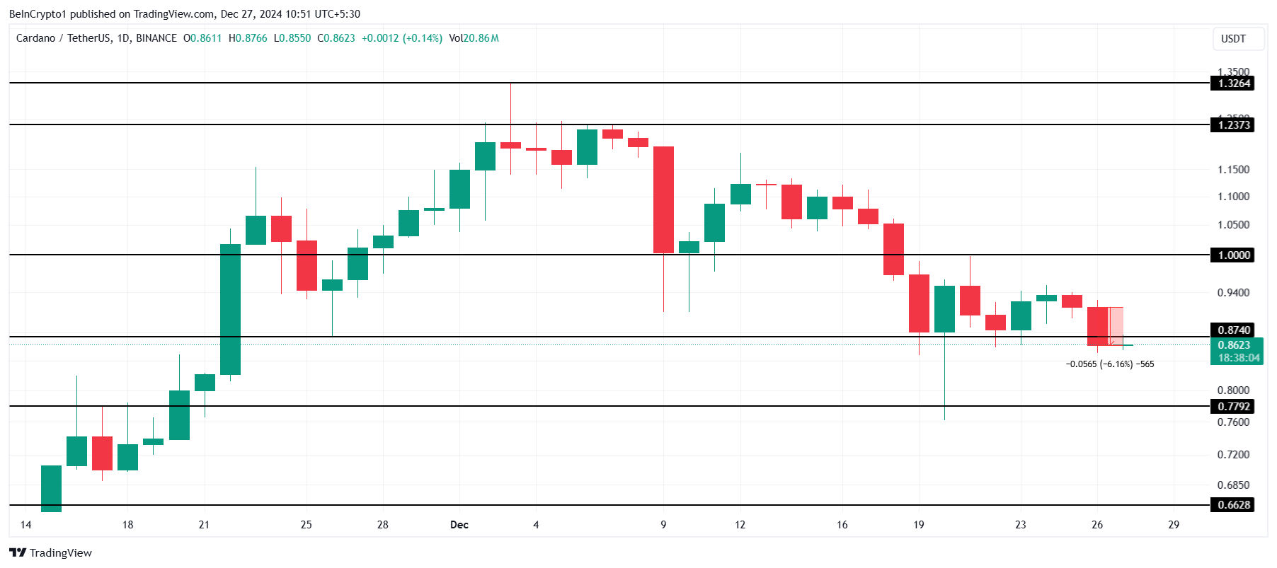 Cardano (ADA) ha visto un calo costante del prezzo dall’inizio di dicembre, raggiungendo un minimo mensile di 0,86 USD. Questo calo ha lasciato gli investitori ADA prevedere un inizio anno cupo.