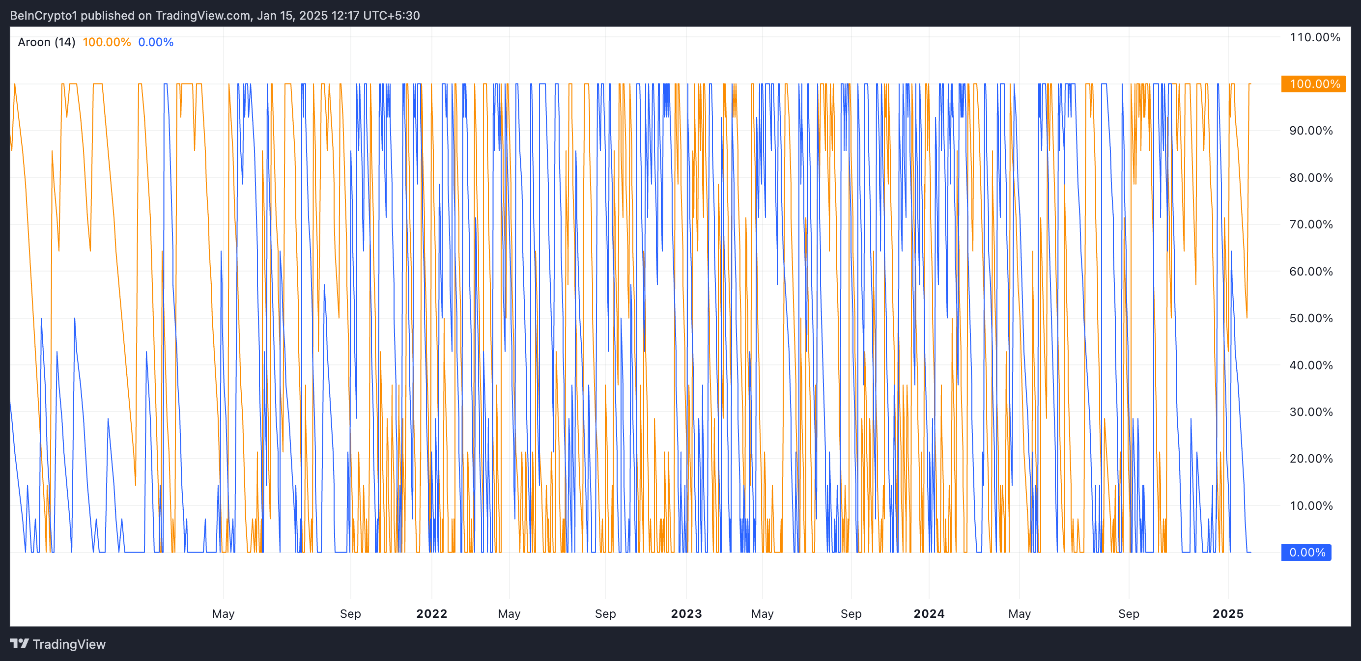 Quando la linea Aroon Up di un asset è al 100% mentre la linea Aroon Down è allo 0%, indica che il massimo più recente dell’asset è avvenuto molto recentemente, mentre il suo minimo più recente è distante nel tempo. Questo è vero per XDC, che attualmente viene scambiato a un massimo di quattro anni di 0.121 USD.