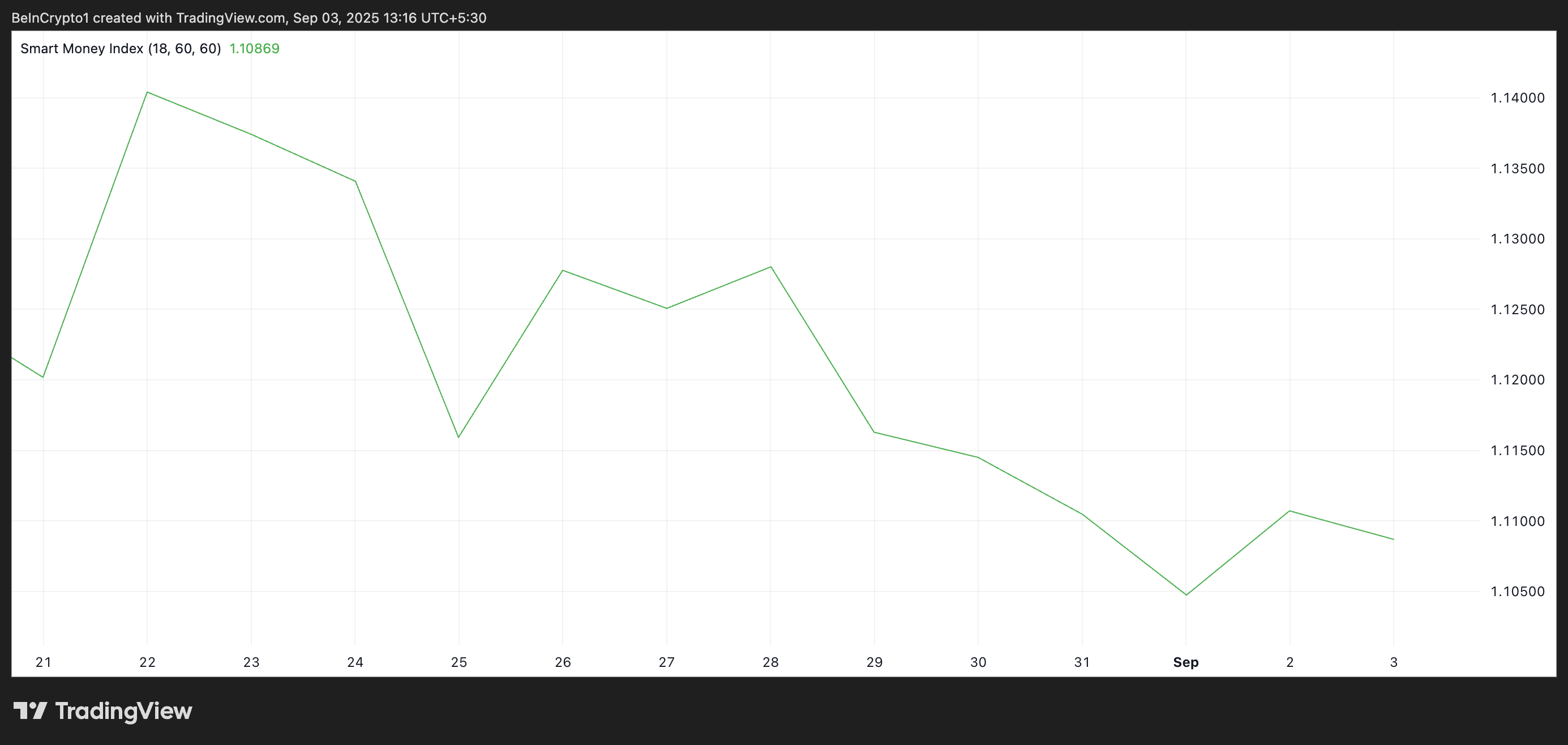 Nel frattempo, anche l’Indice Smart Money (MSI) di HBAR è in calo, indicando che i principali detentori stanno riducendo la loro esposizione all’altcoin. Al momento della pubblicazione, è a 1,108.