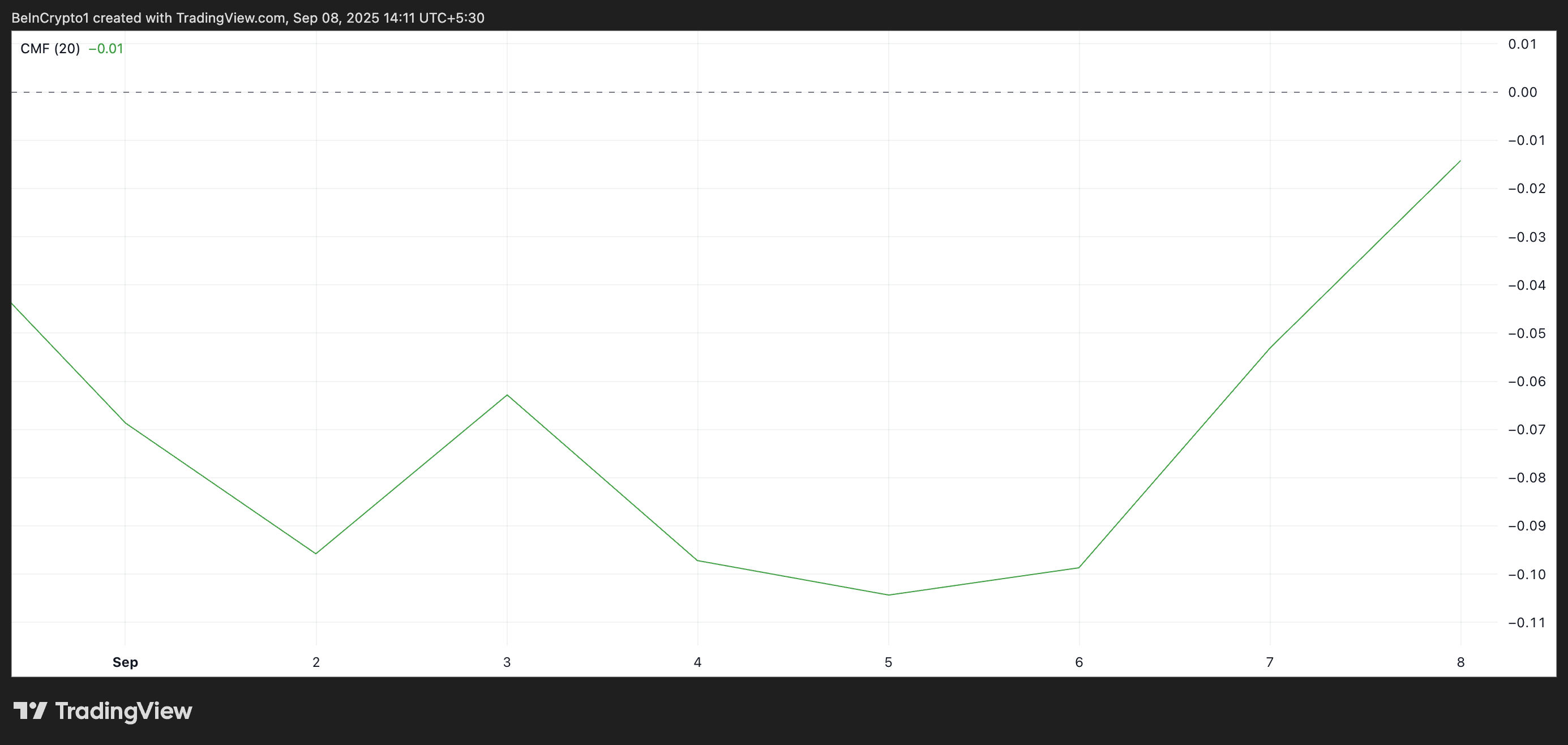 Un’analisi del grafico giornaliero PI/USD mostra che il Chaikin Money Flow (CMF) del token sta salendo costantemente nonostante i suoi movimenti di prezzo laterali. Questo crea una divergenza rialzista che suggerisce afflussi crescenti nel token.
