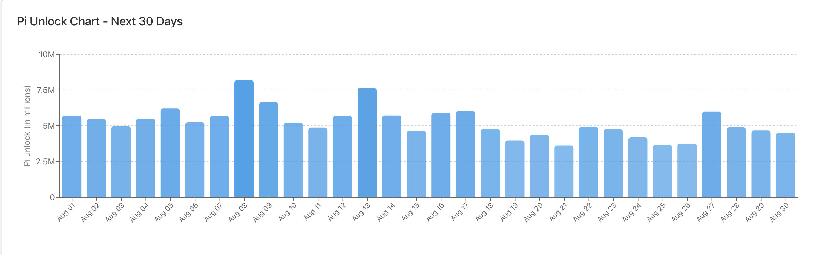 Secondo i dati di PiScan, 150 milioni di token, valutati a $64 milioni ai prezzi di mercato attuali, sono programmati per essere sbloccati nei prossimi 30 giorni.