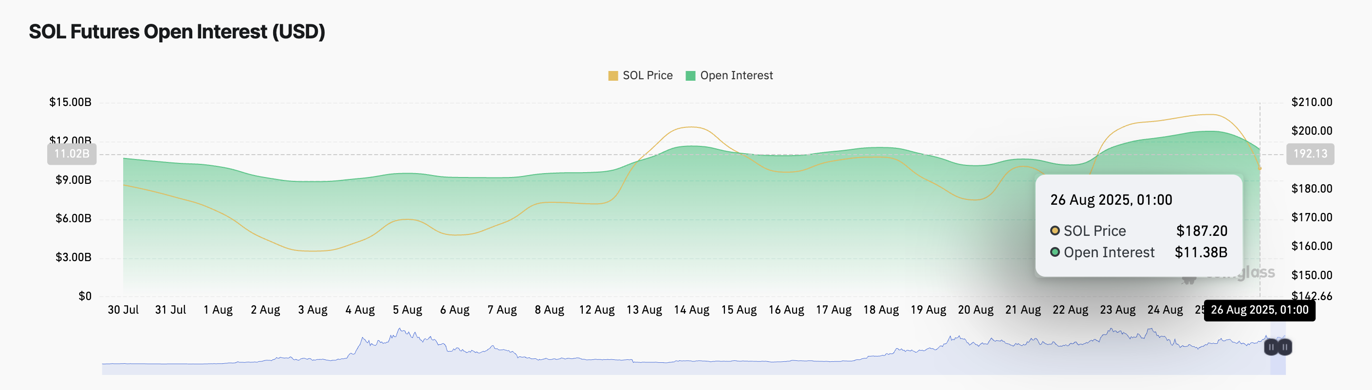 Nonostante questa notizia, la reazione del prezzo di SOL è rimasta contenuta. Il calo più ampio del mercato ha trascinato la moneta giù di quasi due cifre nell’ultimo giorno. Durante quel periodo, il suo open interest sui futures è sceso dell’11% raggiungendo $11,38 miliardi al momento della scrittura.