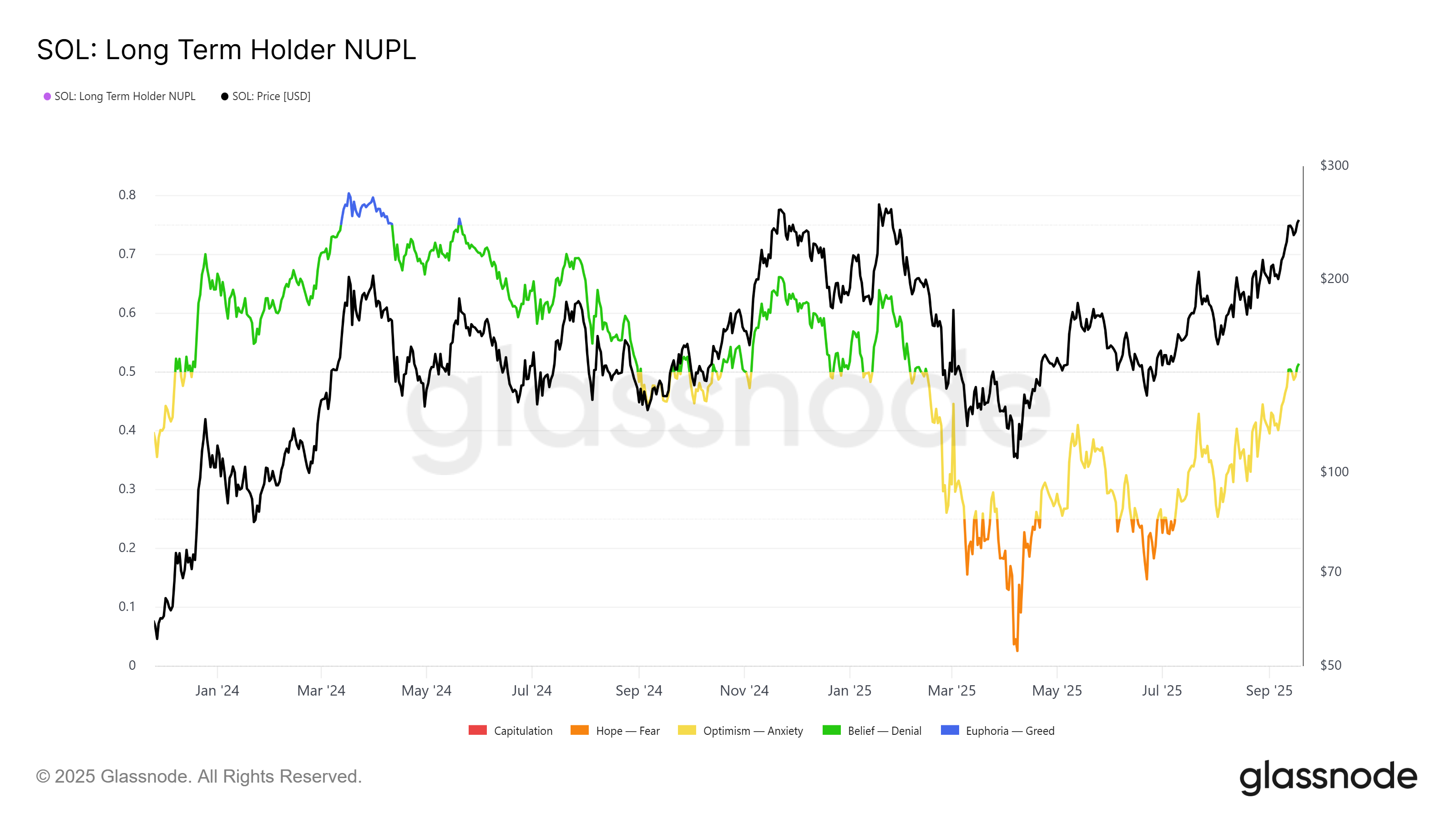 Dato che il livello attuale è ancora al di sotto di questa soglia, Solana mantiene spazio per ulteriori guadagni. Ciò implica che, sebbene ci siano prese di profitto, i profitti non realizzati non sono ancora aumentati a livelli che tipicamente causano inversioni brusche nel prezzo di SOL.