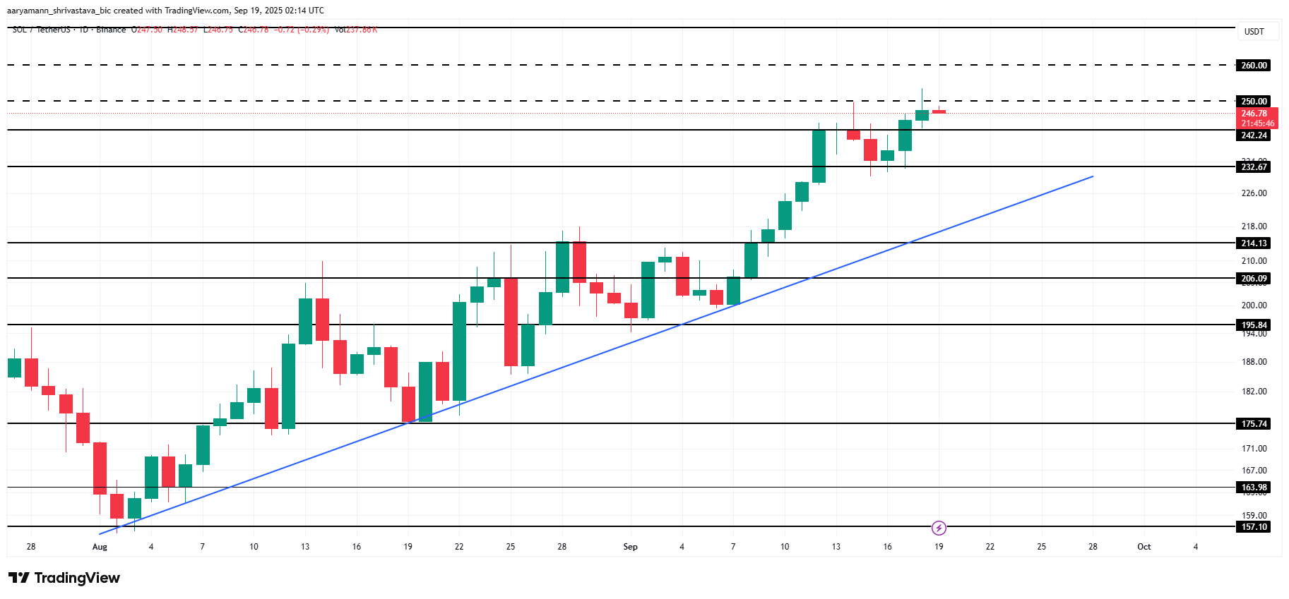 Il rally ha portato SOL al livello critico di $250, un livello psicologico chiave che potrebbe determinare la prossima fase del suo movimento di prezzo.