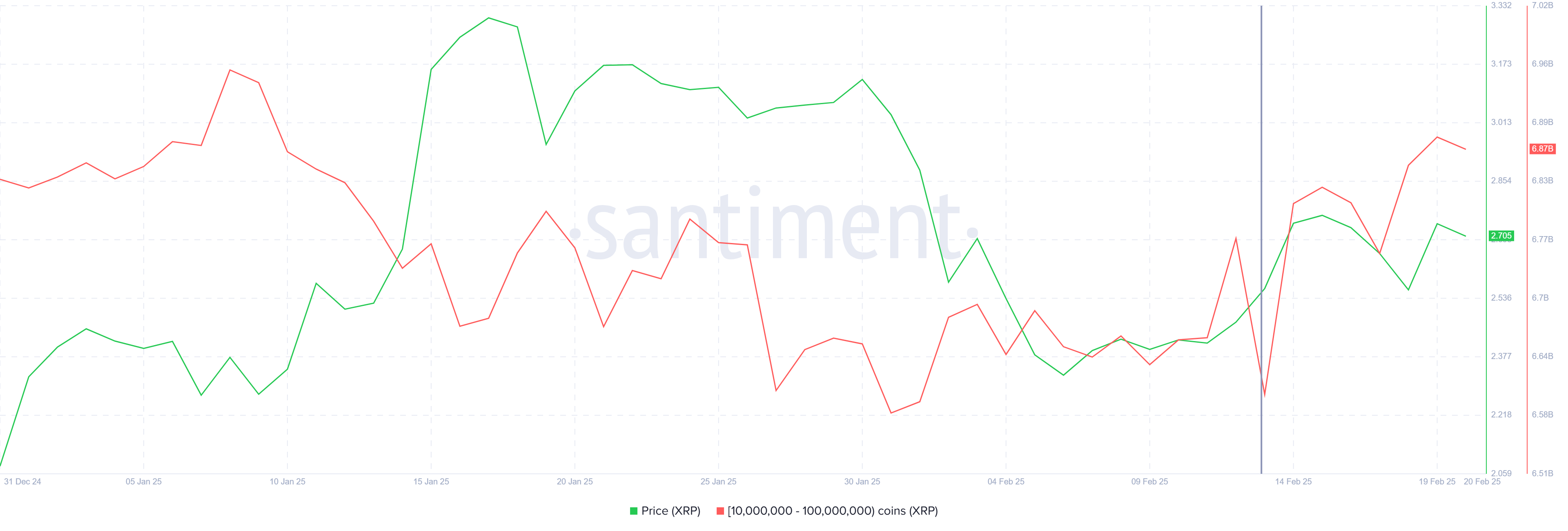 Gli indirizzi delle balene che detengono tra 10 milioni e 100 milioni di XRP sono stati attivamente in accumulo. Questi investitori hanno acquistato circa 270 milioni di XRP per un valore di circa $730 milioni nell’ultima settimana. Questo accumulo indica una forte convinzione nel futuro della criptovaluta; soprattutto poiché i grandi detentori di portafogli tendono ad avere un’influenza considerevole sui movimenti di prezzo.