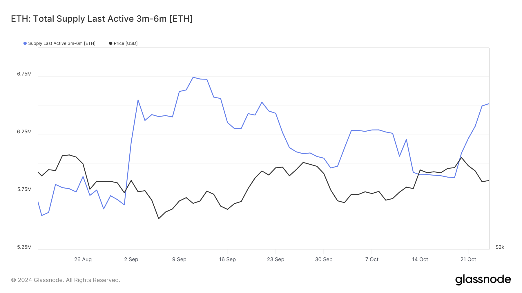 Questo movimento da parte dei detentori a medio termine indica incertezza di mercato, con questo gruppo spesso più reattivo ai cambiamenti di prezzo. La loro attività recente evidenzia preoccupazioni sul potenziale ribasso, poiché grandi movimenti possono segnalare esitazione tra gli investitori riguardo la stabilità a breve termine di ETH.