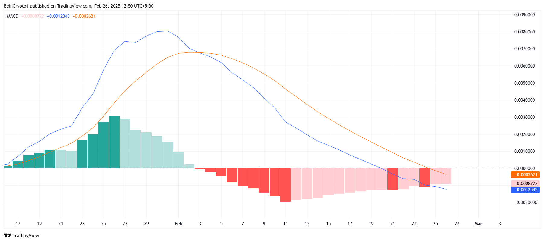 Un incrocio rialzista sul MACD fornirebbe un forte segnale che il trend ribassista per XCN sta per concludersi. Questo incoraggerebbe più attività di acquisto, portando a un movimento del prezzo verso l’alto. Tuttavia, affinché l’incrocio avvenga, è essenziale che le condizioni di mercato più ampie rimangano favorevoli e il sentiment degli investitori continui a migliorare.