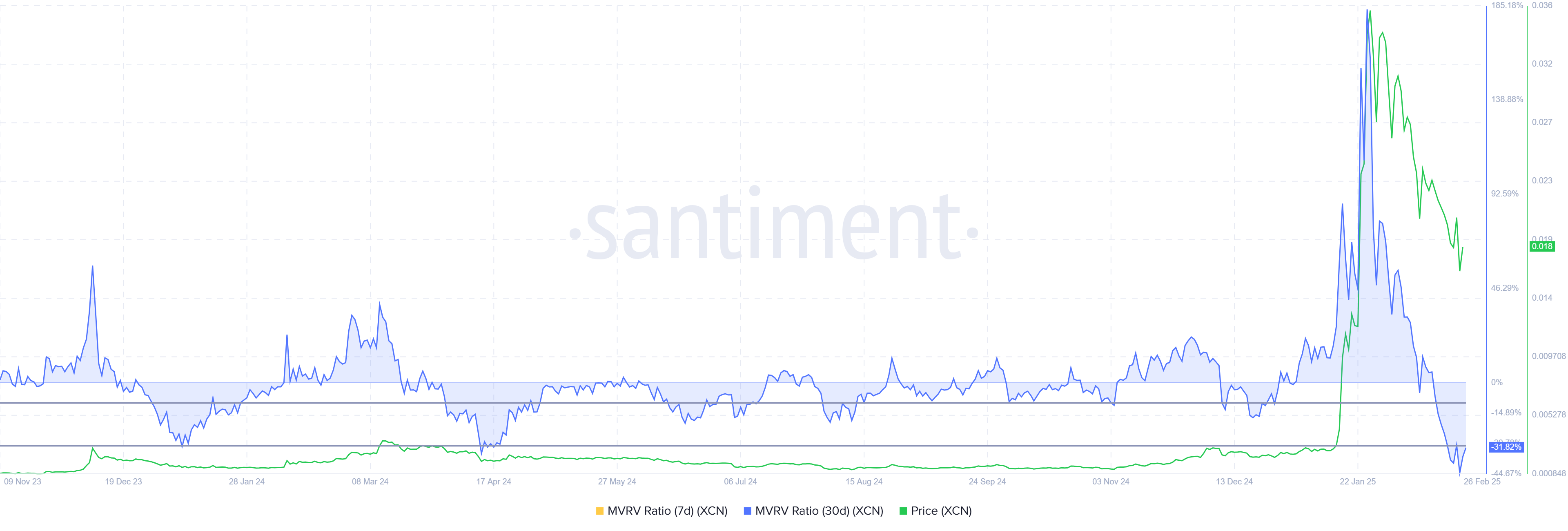Se gli investitori colgono questa opportunità e si muovono per accumulare, aiuteranno a stabilizzare il prezzo e innescare un futuro rally. Questo permetterebbe agli investitori di ottenere guadagni significativi quando il prezzo di XCN si riprende. Poiché il rapporto MVRV rimane nella zona di opportunità, la decisione degli investitori di agire potrebbe plasmare il futuro del movimento del prezzo di XCN.