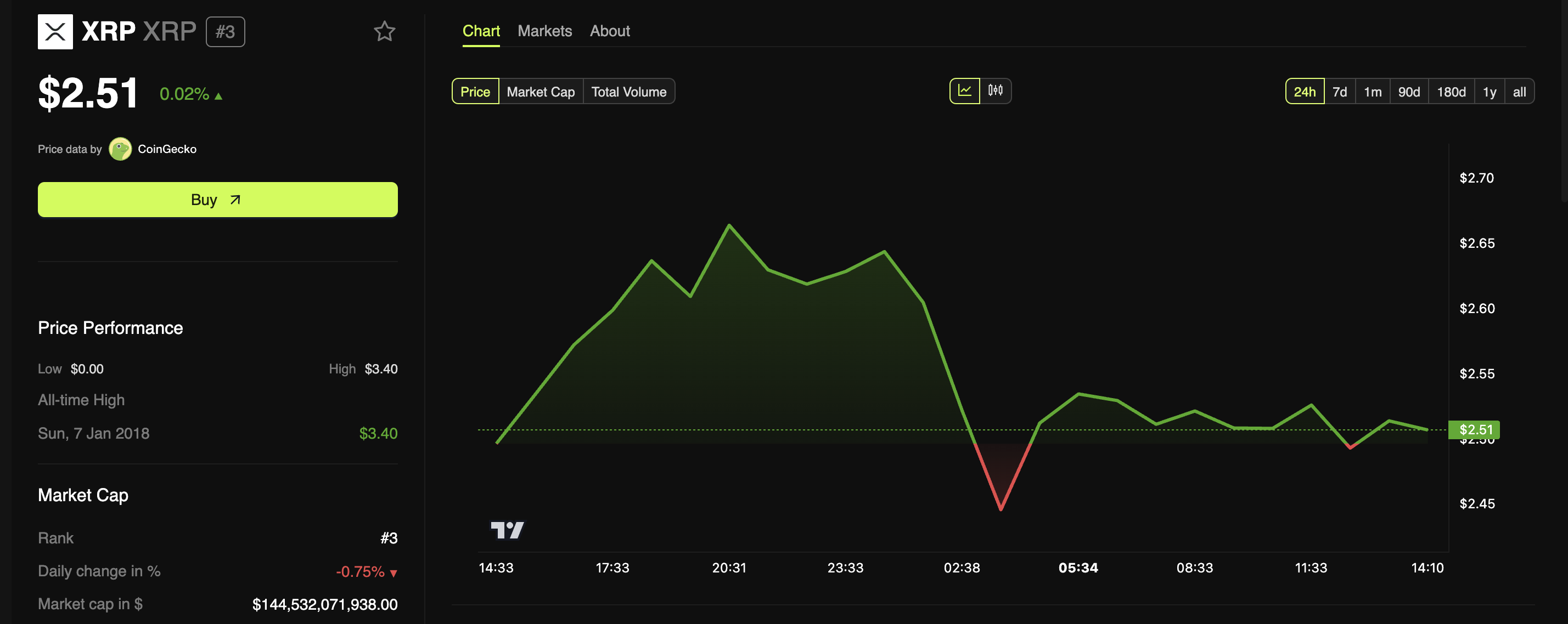 Tuttavia, nelle ultime 24 ore, il prezzo è rimasto per lo più stabile, scambiando a $2.51 al momento della scrittura. Tuttavia, negli ultimi sette giorni, XRP è diminuito di quasi il 20%.