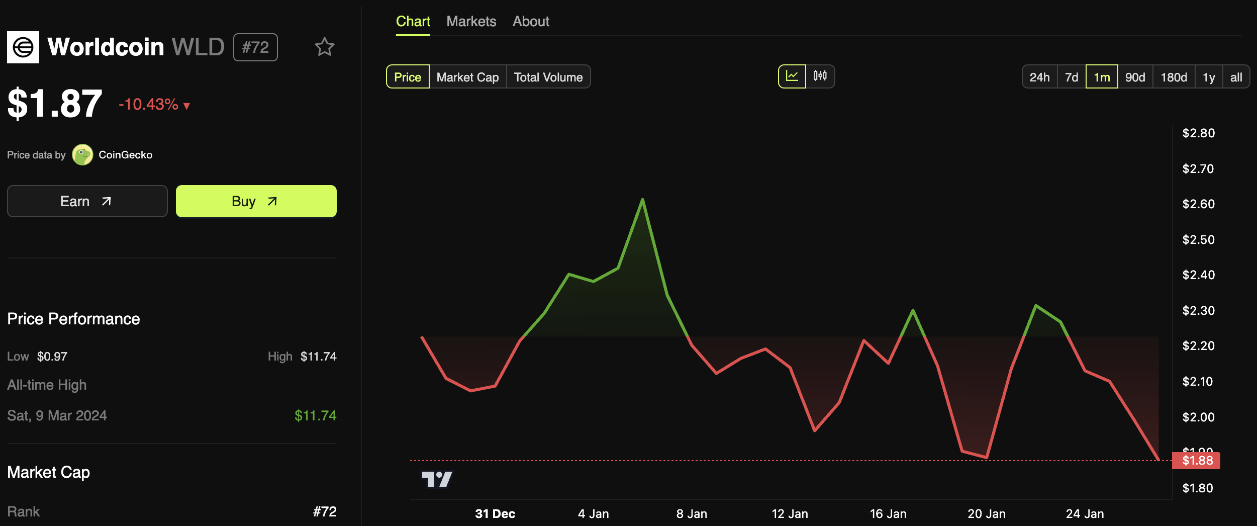 Il token WLD della seconda azienda è aumentato dopo che Trump ha annunciato un importante investimento AI negli Stati Uniti, ma il suo prezzo si è dimostrato più volatile.