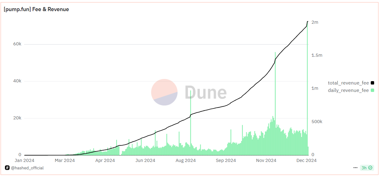 La cifra di 14 milioni USD ha segnato il più alto ricavo giornaliero di Pump.fun dalla sua nascita. Nonostante le critiche e le sfide durante il 2024, Pump.fun è apparentemente diventata la piattaforma di riferimento per i creatori di memecoin.