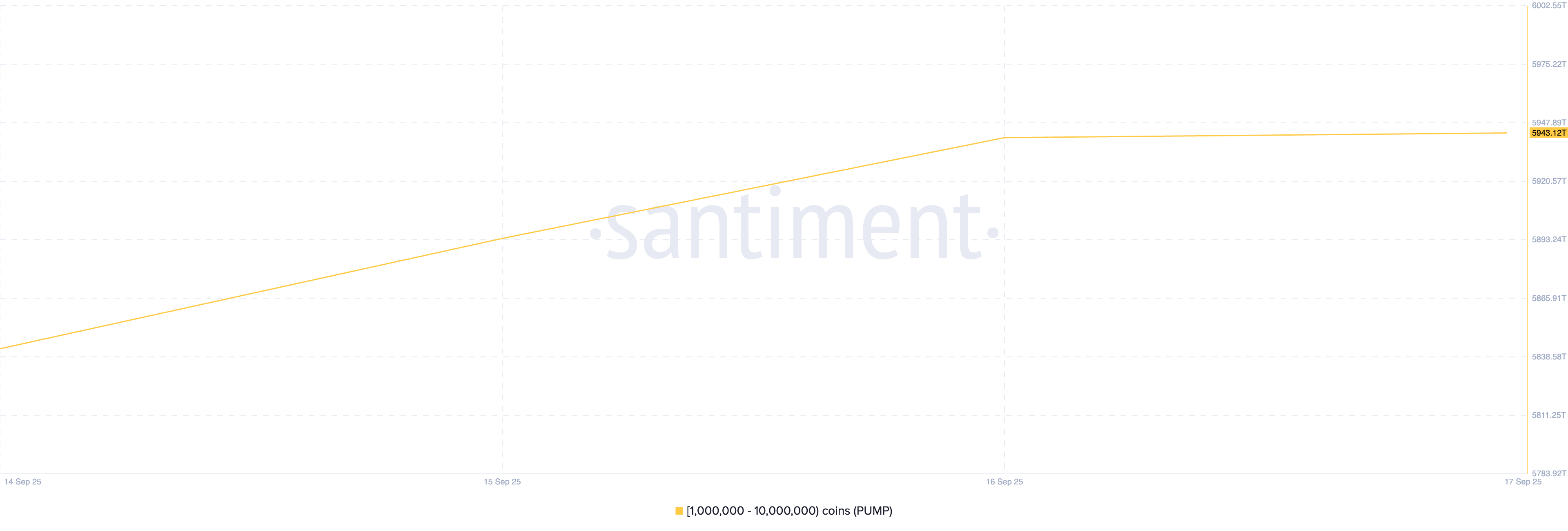 I dati on-chain di Santiment mostrano che i grandi detentori con tra 1 milione e 10 milioni di token PUMP hanno significativamente aumentato la loro accumulazione negli ultimi giorni. Da quando l’altcoin ha iniziato il suo trend laterale, questo gruppo di investitori PUMP ha aumentato le sue partecipazioni del 2%.