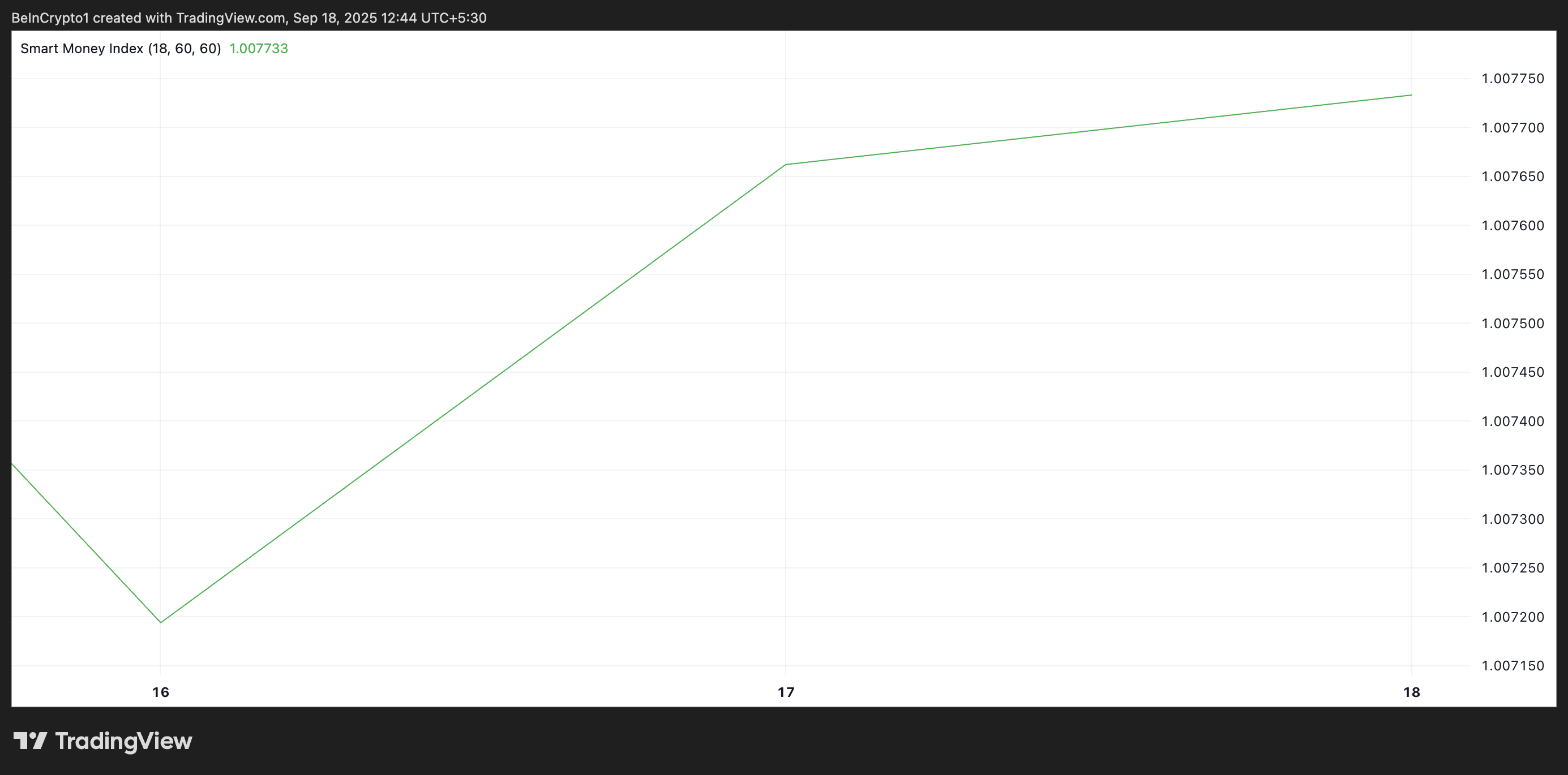 Il termine smart money si riferisce al capitale gestito da investitori istituzionali o trader esperti con una maggiore comprensione delle tendenze di mercato e del timing. L’SMI traccia il loro comportamento confrontando la pressione di vendita al mattino, quando il retail domina, con l’attività di acquisto nel pomeriggio, quando i grandi operatori sono più attivi.