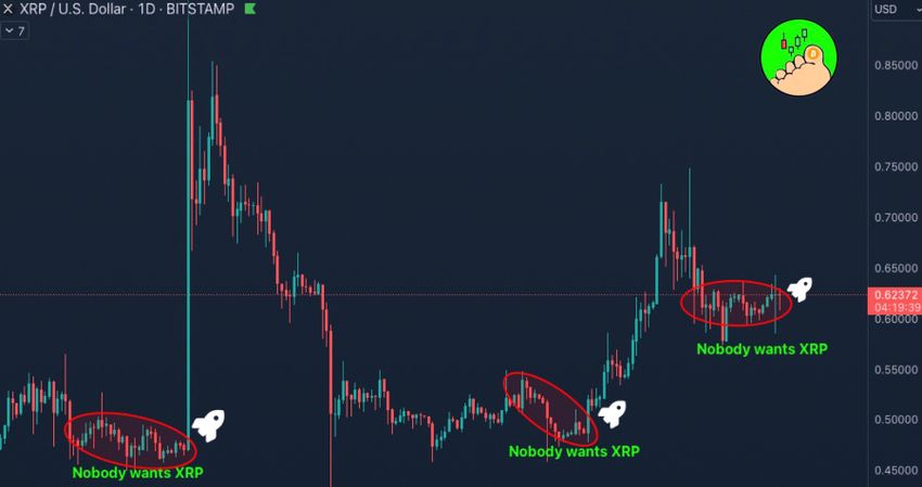 Cryptoes_ta ha notato le similmente tra l’attuale movimento di XRP e quelli che hanno preceduto gli aumenti significativi dall’inizio dell’anno.
