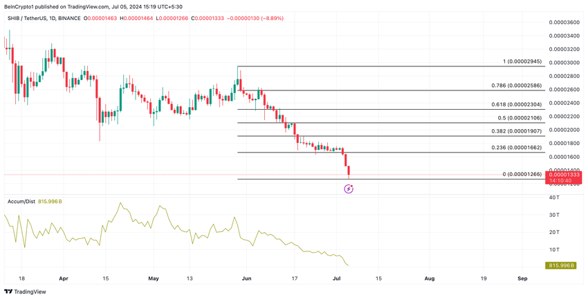 Sponsored SponsoredAnche a causa della generale tendenza al ribasso del mercato, la domanda di SHIB da parte dei partecipanti al mercato è crollata. Ciò si basa sulle letture della linea di accumulazione/distribuzione (A/D) in calo della moneta.