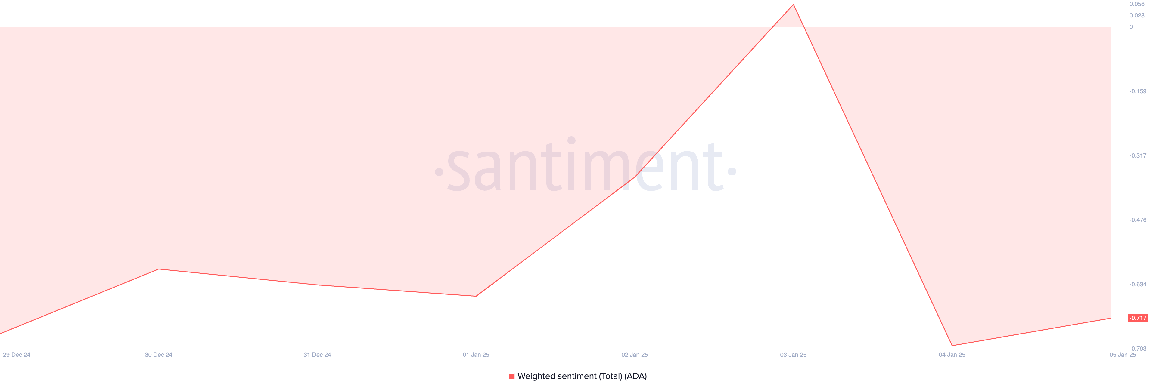 Inoltre, il sentimento ponderato negativo di ADA riflette il crescente bias ribassista verso l’altcoin. Al momento della scrittura, questo è a -0,71.