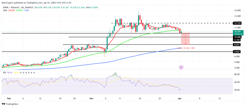 Ilprezzo di Render, se influenzato dagli spunti ribassisti di cui sopra, potrebbe perdere il livello di supporto di 10 dollari per scivolare a 8,7 dollari. Se questo livello di supporto viene perso, l’altcoin scenderà probabilmente a 8,05 dollari, segnando una correzione del 20%.