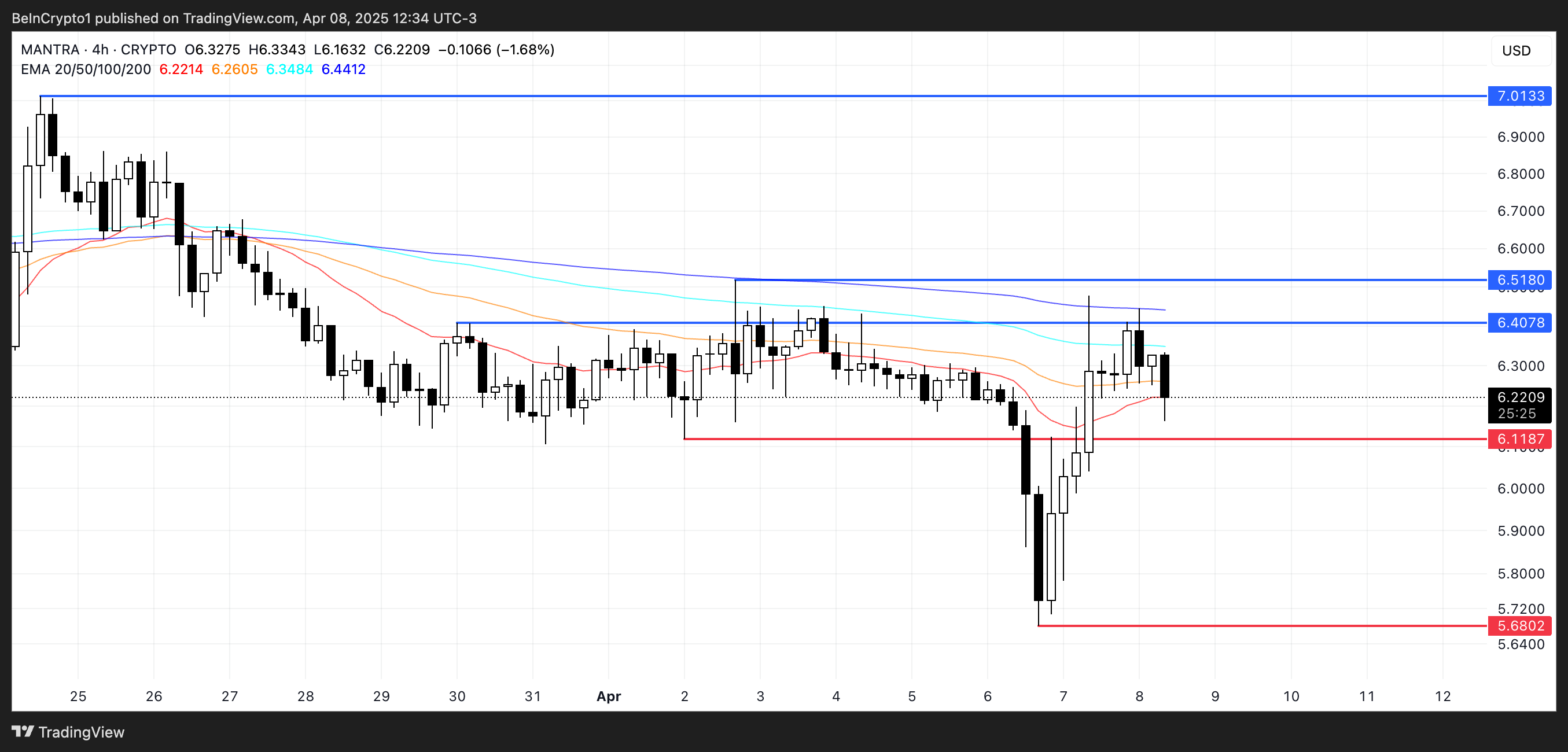 Tuttavia, se gli acquirenti riprendessero il controllo e il trend si invertisse, Mantra potrebbe iniziare a muoversi verso l’alto verso la resistenza chiave a $6,40 e $6,51. Un breakout riuscito al di sopra di questi livelli potrebbe innescare un rally più forte, portando potenzialmente OM di nuovo a $7 — un livello che rafforzerebbe la sua prospettiva rialzista a lungo termine.
