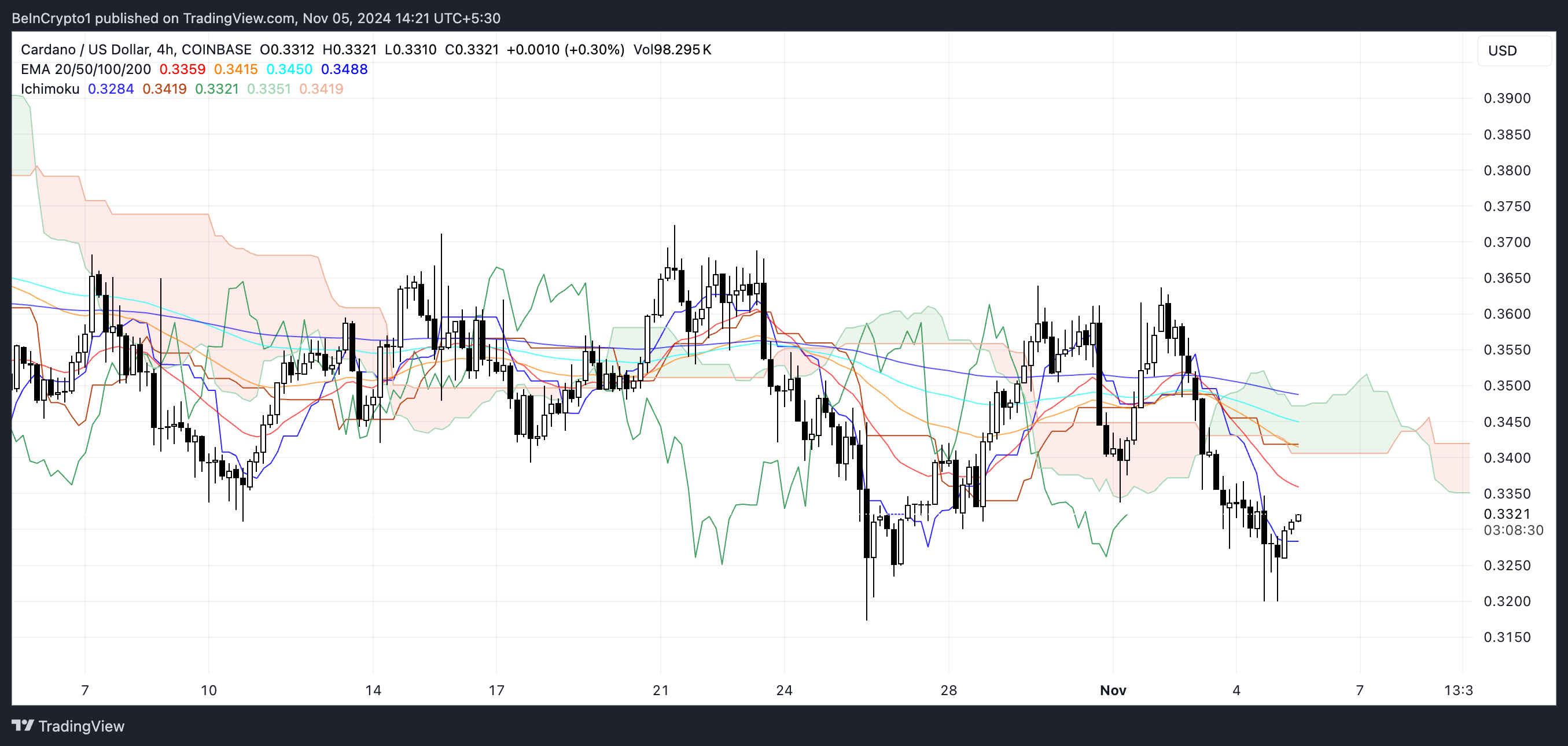 La nuvola Ichimoku di Cardano dipinge uno scenario ribassista