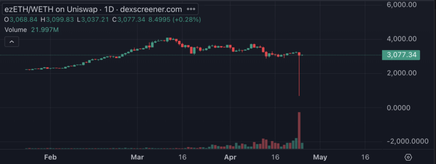 L’incidente ha causato la perdita della parità 1:1 di ezETH sul suo asset sottostante, Ethereum (ETH).