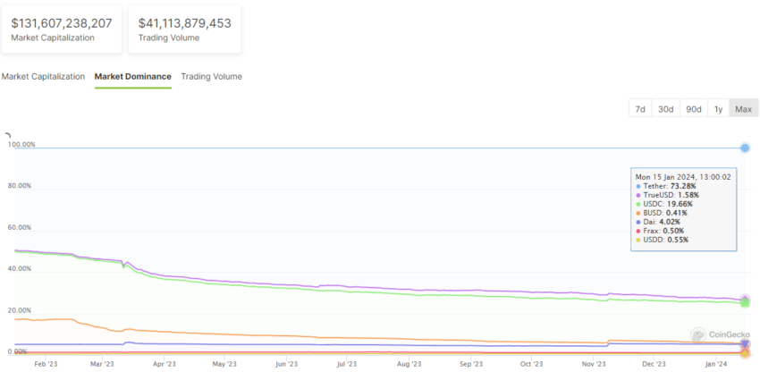 Tether Leads USD Stablecoins by Market Share. Source: CoinGecko