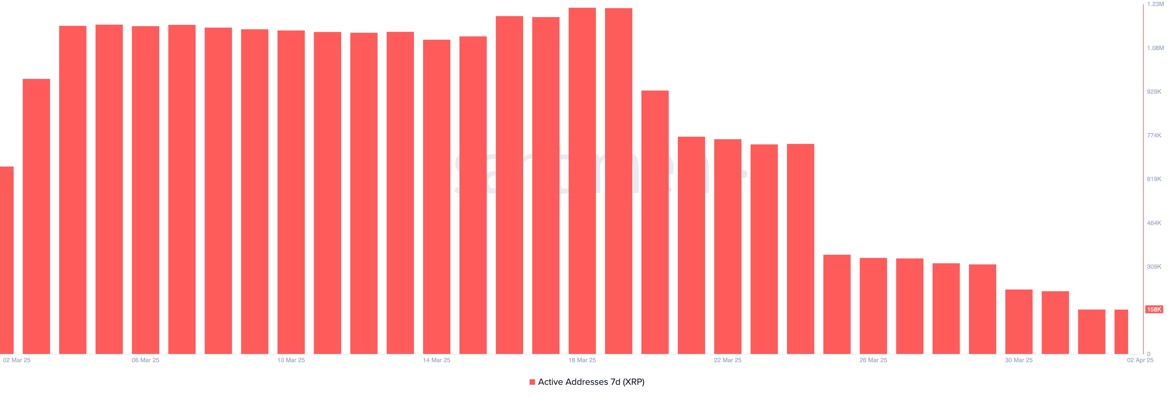 L’attività della rete di XRP è salita a livelli record a marzo, con indirizzi attivi su 7 giorni che hanno raggiunto un picco massimo di 1,22 milioni il 18 marzo.