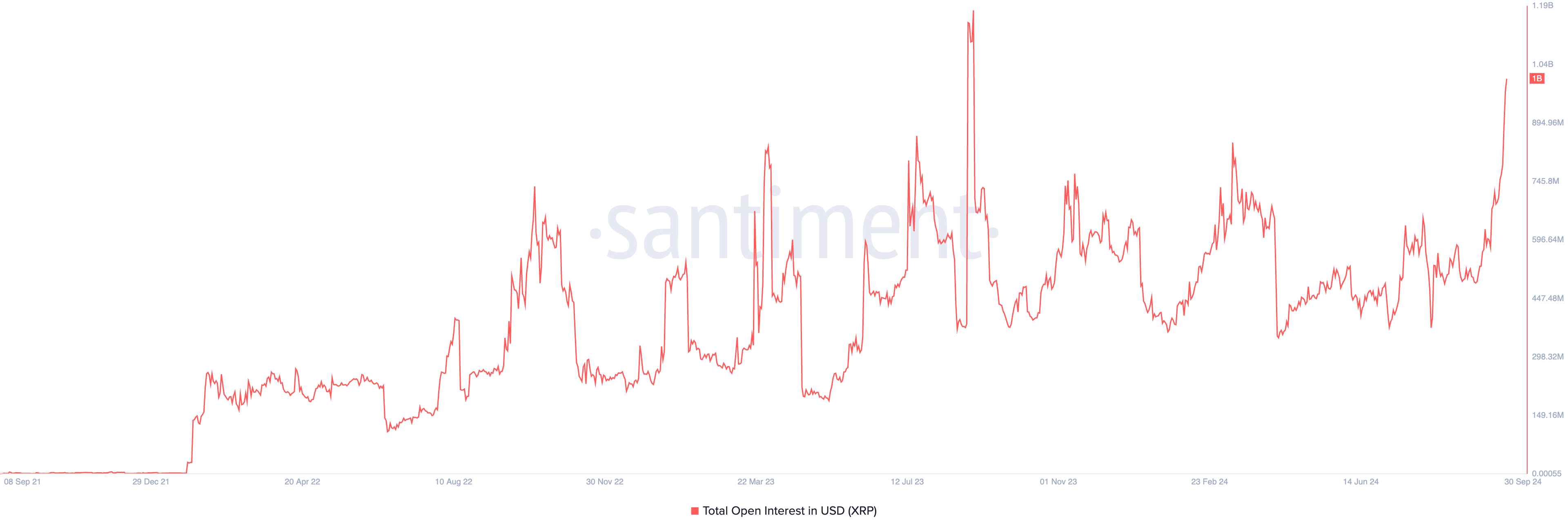 SponsoredL’aumento dell’interesse aperto del token negli ultimi giorni segnala che i partecipanti al mercato sono determinati a realizzarlo. Al momento della scrittura, l’interesse aperto di XRP è di 1 miliardo di USD, aumentato del 102% negli ultimi 30 giorni. Questa è la prima volta dal settembre 2023 che l’interesse aperto di XRP supera 1 miliardo di USD.