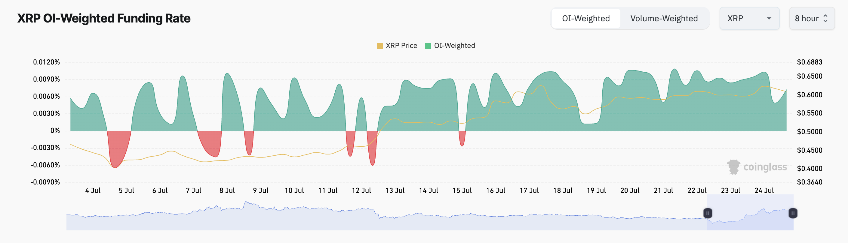 Inoltre, il tasso di cambio tra le criptovalute è rimasto positivo. Al momento della stampa, il tasso di finanziamento di XRP è dello 0,0072%.