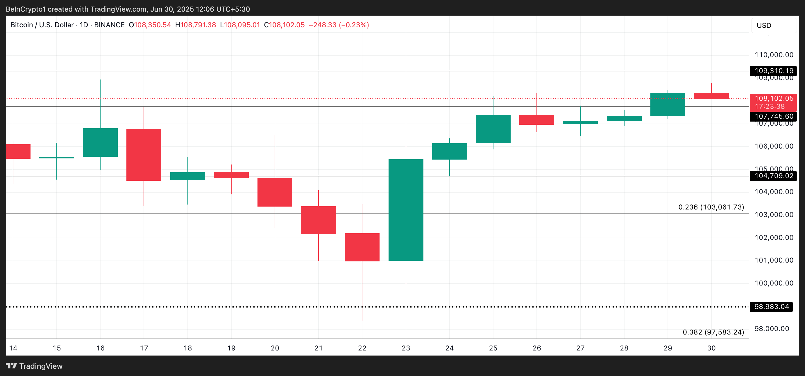 Tuttavia, una ripresa della domanda potrebbe prevenire ulteriori perdite. In tal caso, BTC potrebbe rimbalzare, superare il livello di resistenza a $109.304 e tentare di ritestare il suo massimo storico a $111.917.