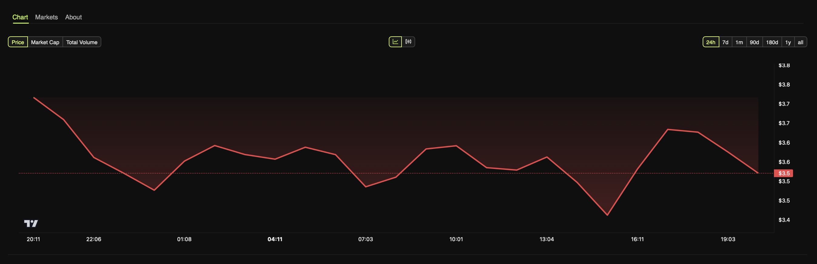 Poco prima dell’interruzione, SUI veniva scambiato a circa 3,70 USD, scendendo a un forte calo di soli 3,35 USD durante l’incidente. Sulla strada per la ripresa, ha quasi raggiunto il suo prezzo pre-crash, fermandosi a 3,54 USD al momento della stampa.