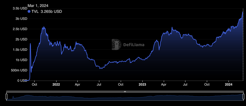Il 1° gennaio il suo TVL era di 2,45 miliardi di dollari, con un aumento di circa 820 milioni di dollari in due mesi.