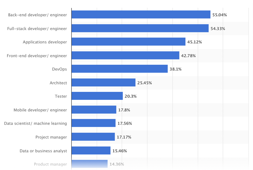 I dati di Statista mostrano che nel 2023 gli sviluppatori back-end e gli sviluppatori full-stack erano i lavoratori più richiesti nel settore IT.